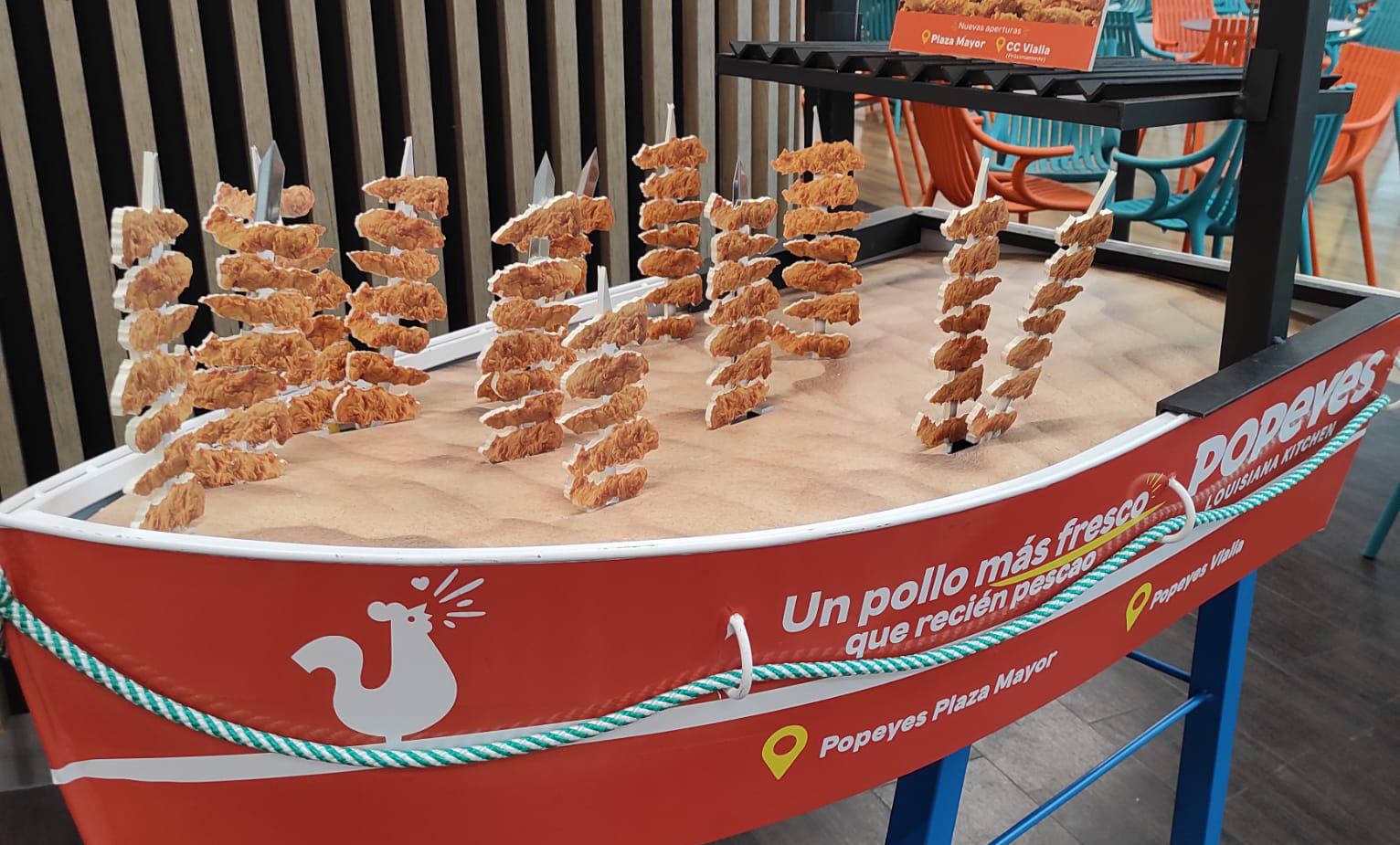 Para la apertura de un nuevo Restaurante Popeyes en Málaga, presentamos una acción muy conectada a la ciudad. Una típica barca de espetos malagueña, esta vez con el pollo de Popeyes como protagonista, para acercar el sabor de Popeyes a los malagueños.